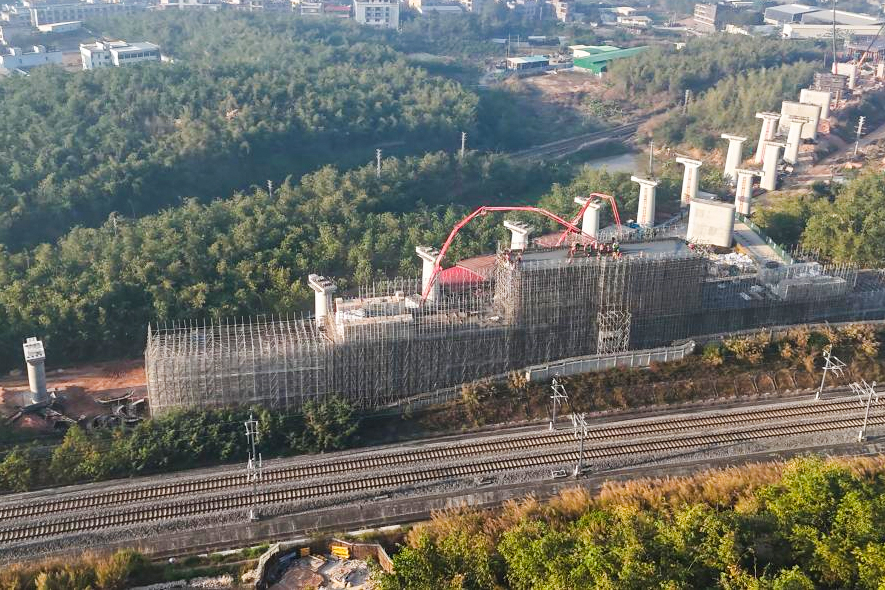 全国首根槽箱组合梁在解惠铁路浇筑成功